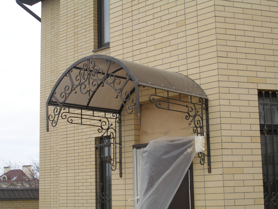 Кованый козырек - прекрасный способ подчеркнуть индивидуальность объекта, а также защитить хозяев и гостей дома от дождя, града и т.д.
