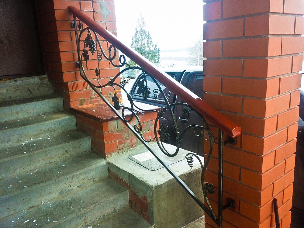 Использование имитации виноградной лозы в производстве кованых перил продолжает набирать свою популярность. Мастера ковки делают все более реалистичные образы винограда, виноградных листьев и виноградной лозы, которые украшают перила, и придают им неповторимый облик. Данная модель кованых перил славиться своим непревзойденным сочетанием классических перил, с прямыми формами, и декора в форме виноградной лозы.